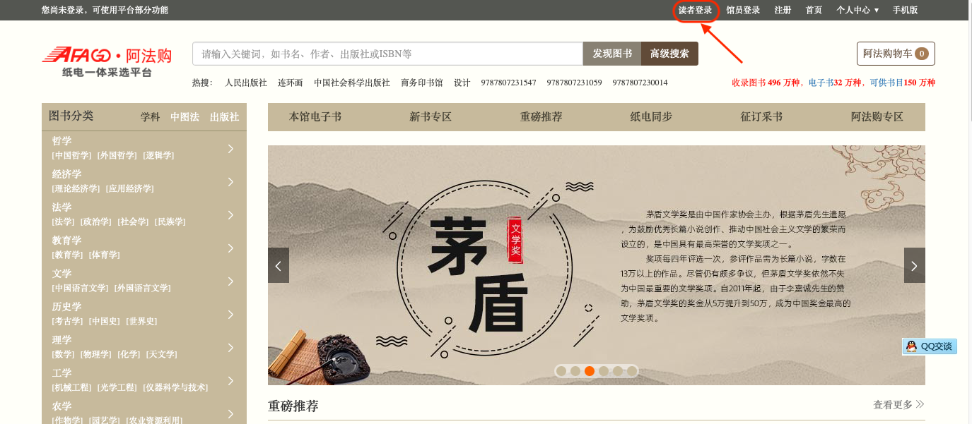 01.点击https://buy.cxstar.com/dpBooks/,点击上方“读者登录”;