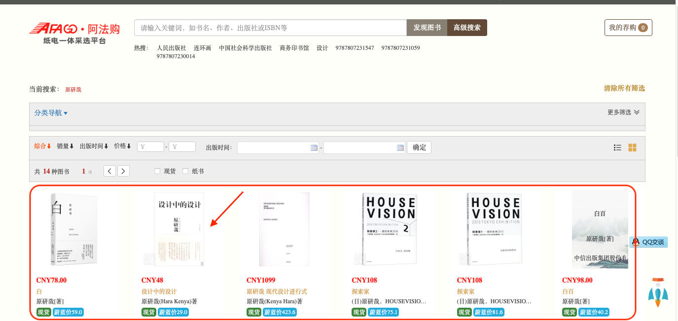 05.出现与关键词相关的搜索结果,点击想要购买的书籍;