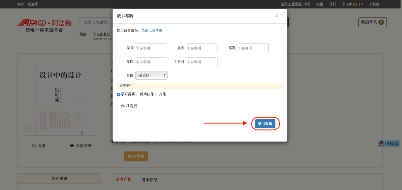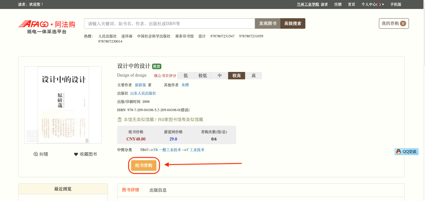 06.点击“纸书荐购”;