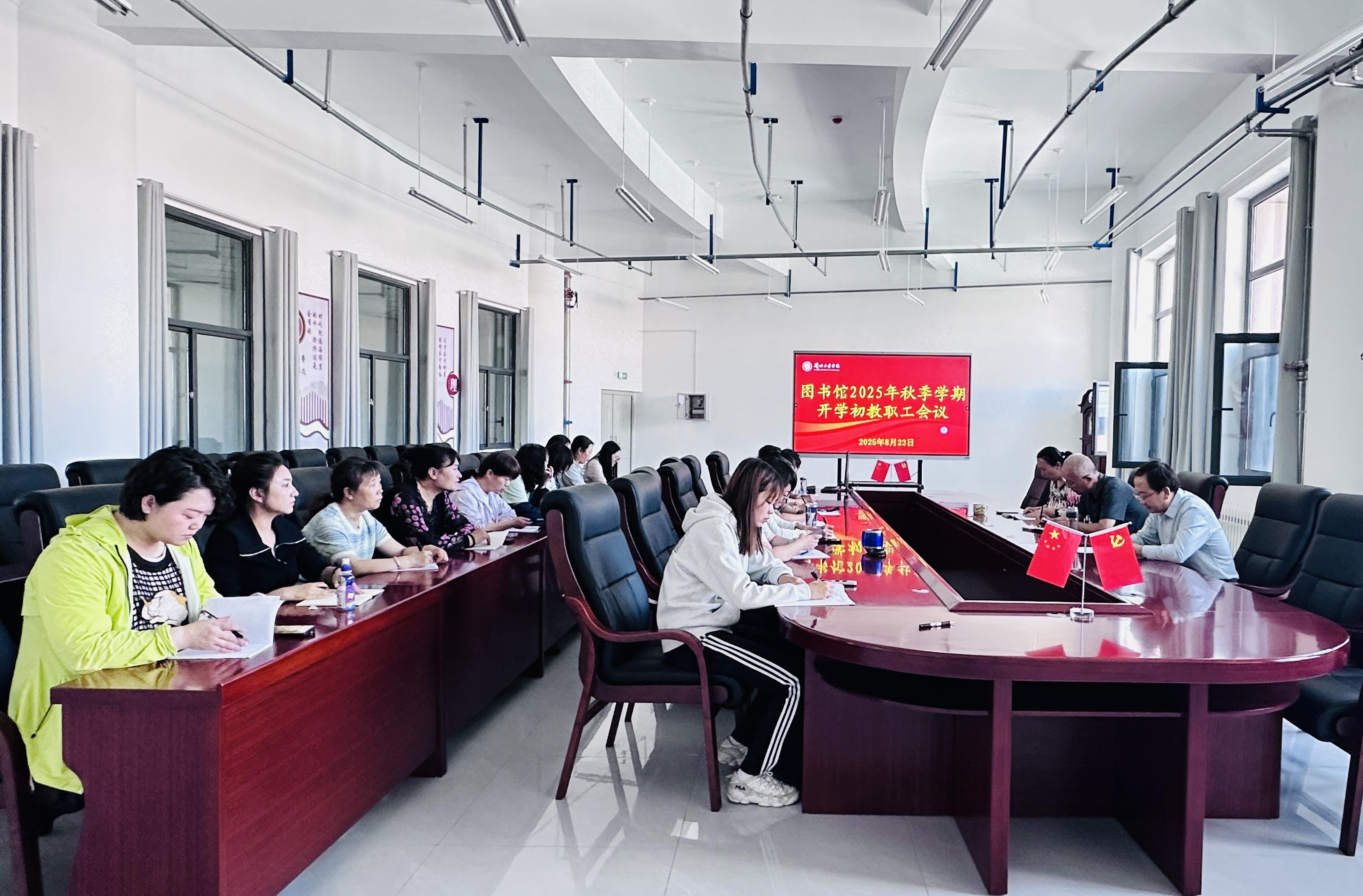 8月23日上午,图书馆在五楼会议室召开2025年秋季学期开学初教职工会议。馆长唐林虎主持会议,党支部书记郝学奎、副馆长曾丽及全体教职工参会,会议围绕审核评估、资源建设、空间升级 、制度完善、文化育人等议题进行了工作部署。