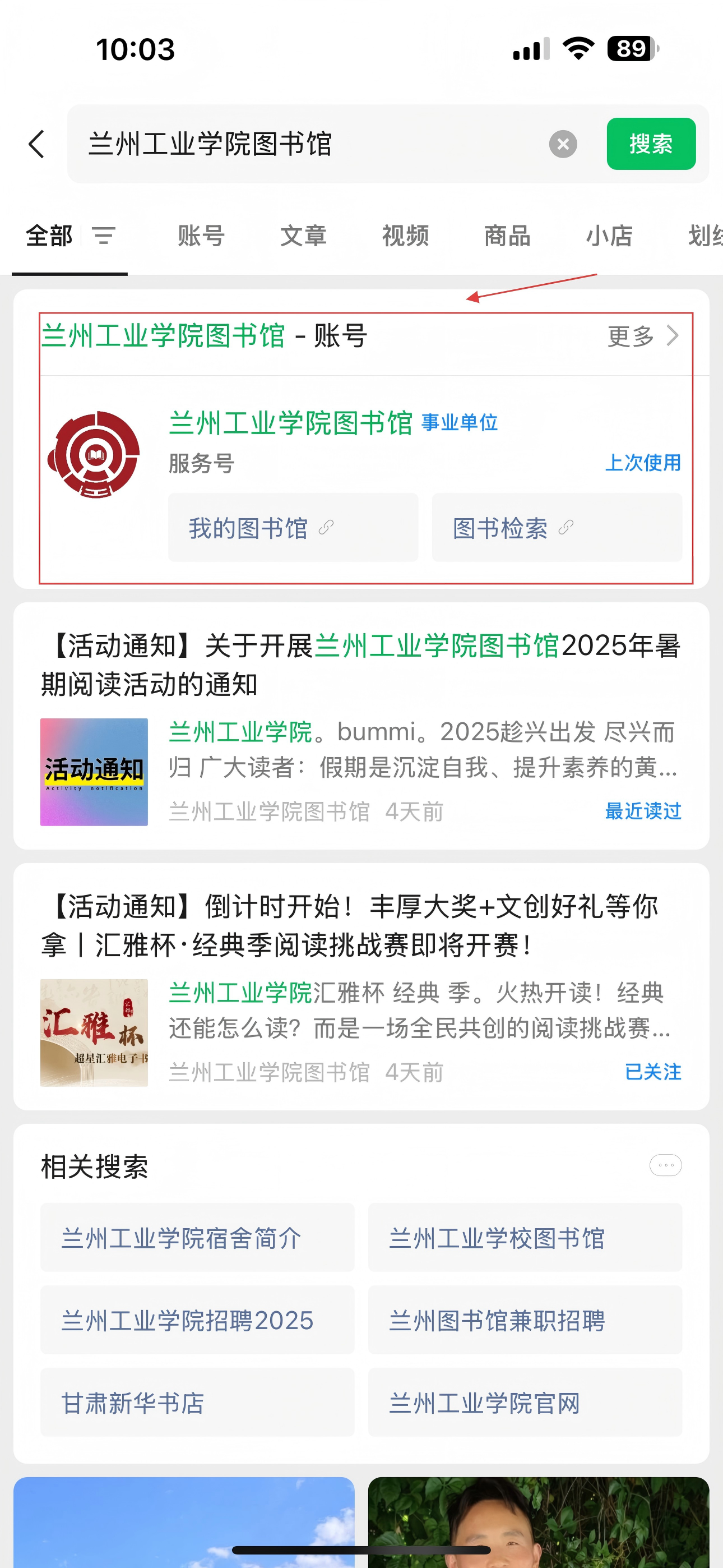 1. 打开微信,搜索“兰州工业学院图书馆”服务号并点击关注。
