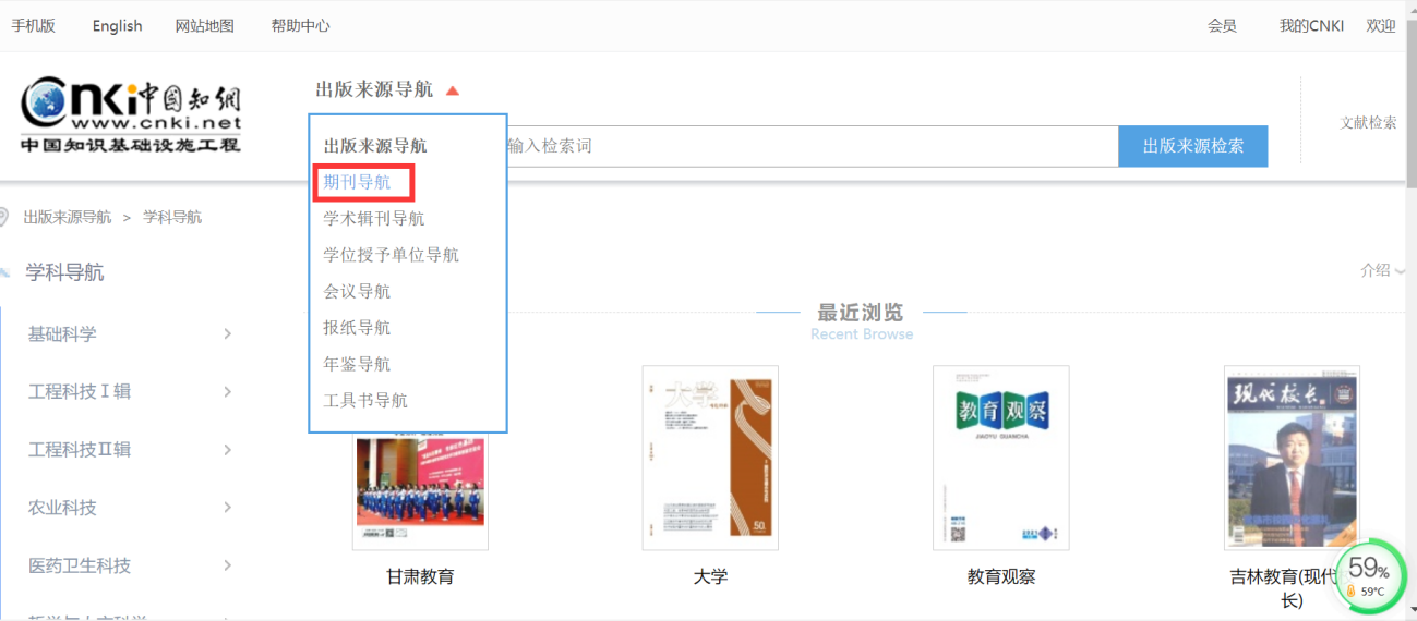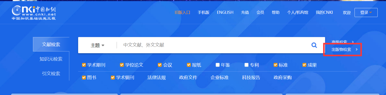 4、通过首页“检索框”右侧出版物检索可快速精准定位到具体文章所发表的期刊、会议、报纸等;