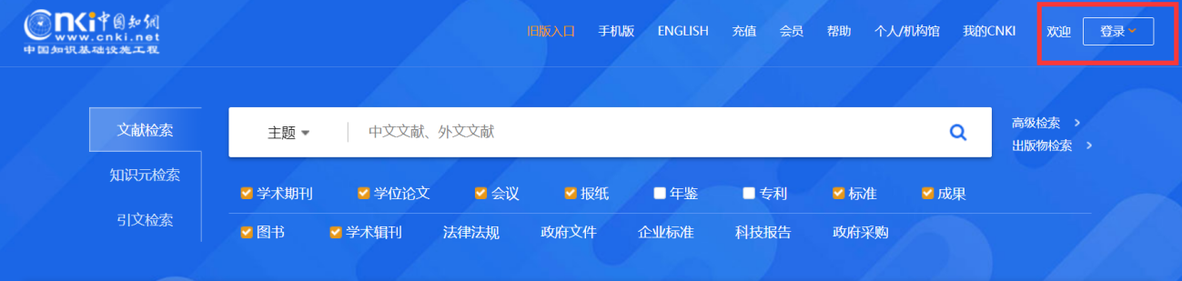 2、在学校IP范围内,系统自动登录;或者点击右上方“登录”,---IP登录;校外通过个人漫游账号和学校VPN账户登录即可。