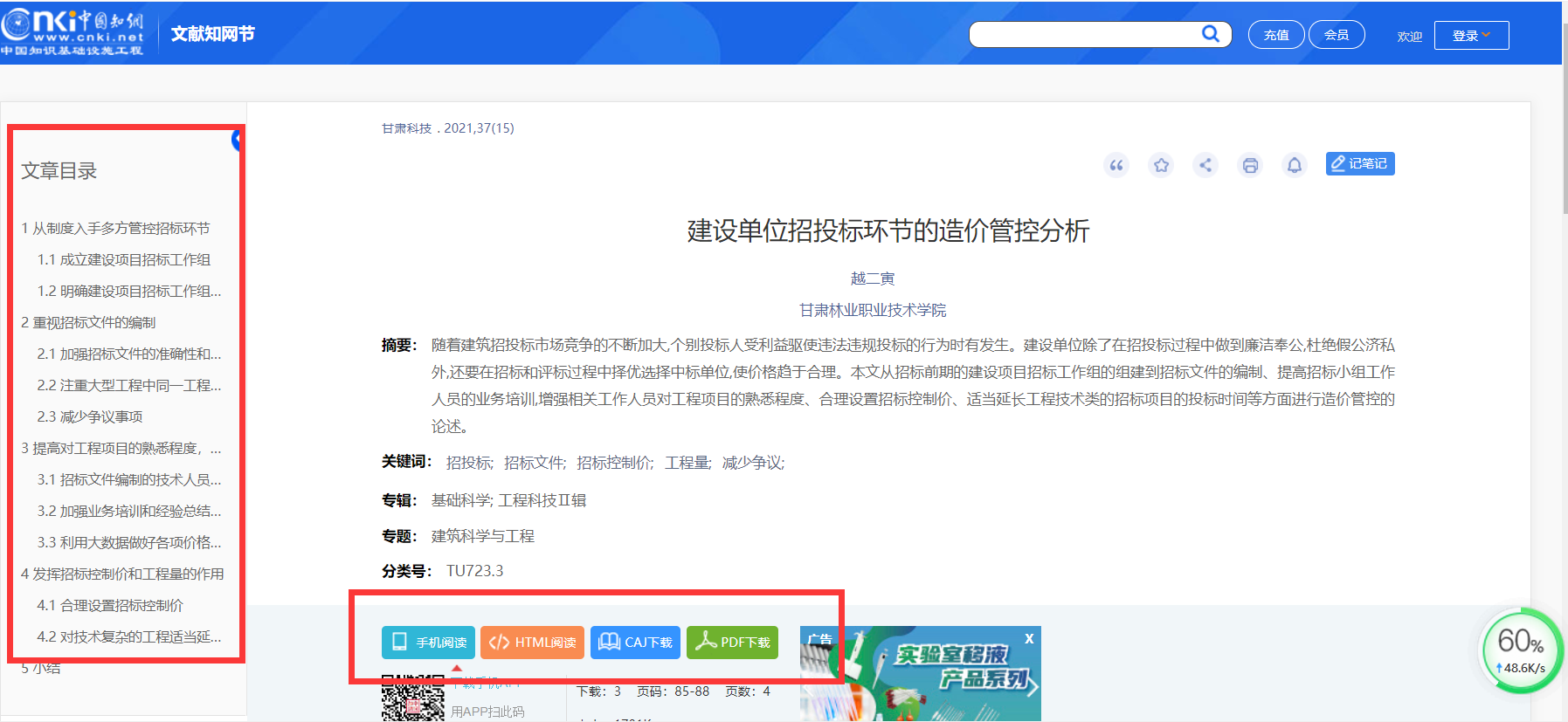 3、通过首页“检索框”输入检索主题、关键词、作者、单位、参考文献等相关检索关键词,即可浏览、下载需要的文章(可选用首页最下方“CNKI常用软件下载”处,下载安装CAJ阅读器,亦可直接下载PDF格式文档)。