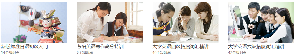 包括英语四六级、考研英语、学历英语、日语N1/N2级等内容