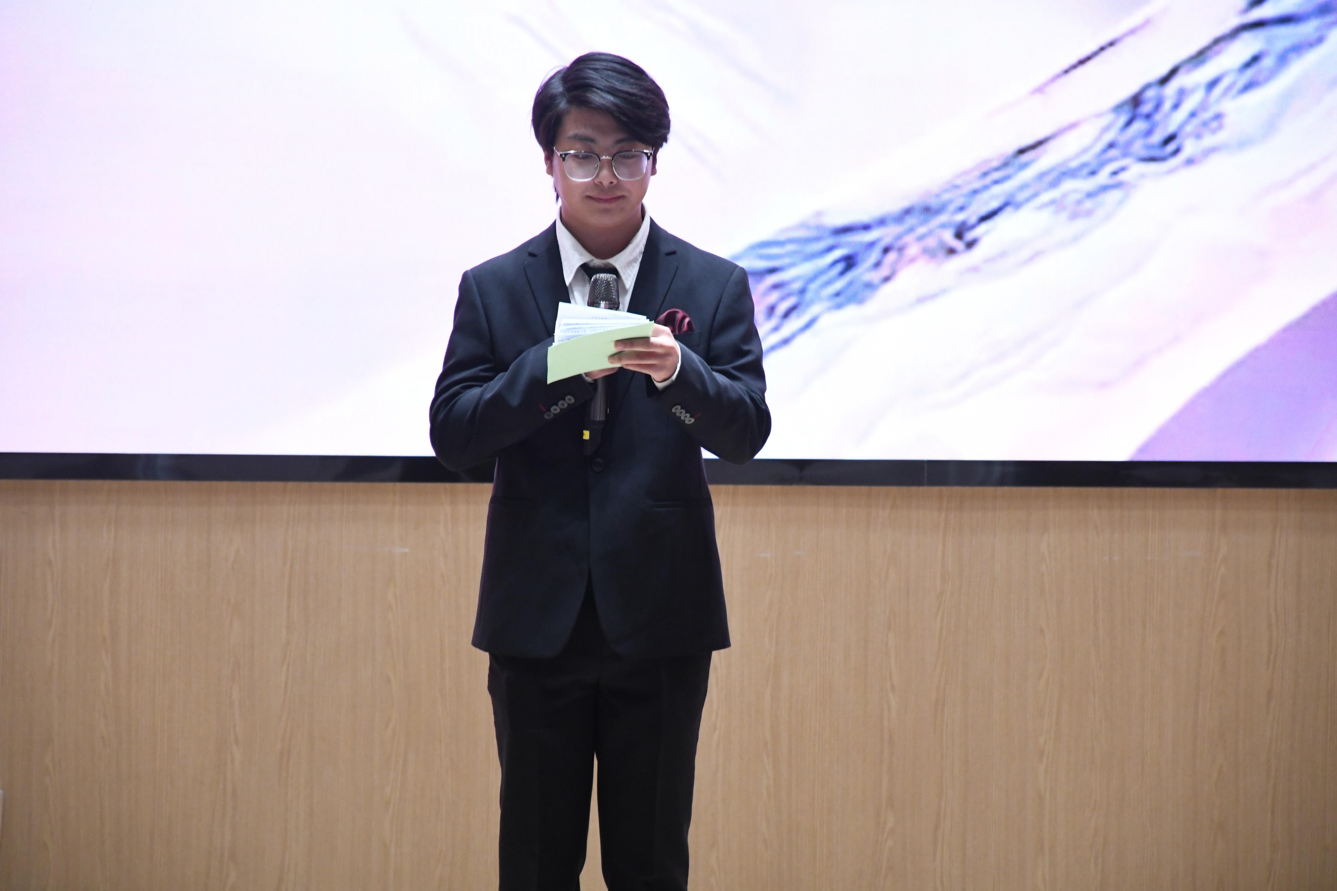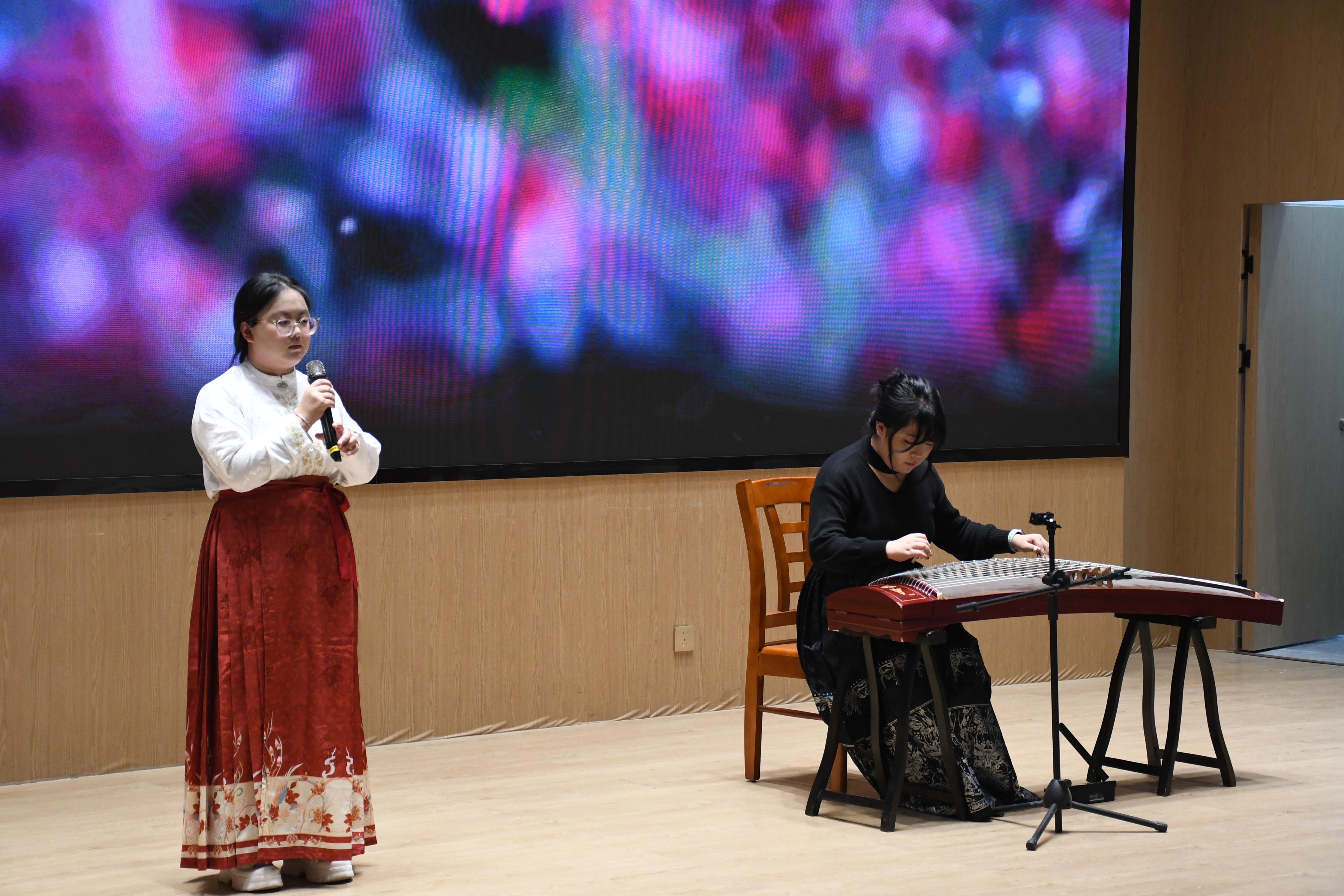 比赛中,选手们以饱满的情感、专业的表达,诵读了《将进酒》《少年中国说》《爱莲说》《长征颂》《月光下的中国》等经典篇目。他们的演绎风格鲜明,将经典内涵与声音魅力深度融合,或细腻温婉、收放自如,将经典文本的柔情与哲思娓娓道来;或雄浑激昂、气势磅礴,尽显中华优秀文化的磅礴力量,为现场师生呈现了一场兼具思想深度与观赏价值的视听盛宴,赢得台下阵阵掌声。暖场环节,艺术设计学院学生黄薪然为大家带来了《四大名著》歌曲串烧表演,演唱中男女声转换流畅自然,时而热血澎湃、尽显侠气,时而深情婉转、扣人心弦,将现场氛围值拉满。